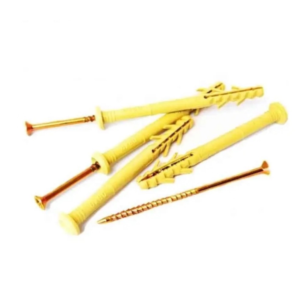 Дюбель швидкий монтаж – це універсальне кріплення, що використовується для кріплення різних конструкцій до мінеральних основ (бетон, цегла, натур. камінь та ін.). Швидкий монтаж 6х80 використовується при монтажі каркасу з профілів для гіпсокартону – за допомогою дюбелів швидкий монтаж до основ кріпляться напрямні профілю UD. Швидкий монтаж складається з поліпропіленового дюбеля розпірного і сталевого цвяха з гвинтовою нарізкою. Дюбель має цинкове (жовте) покриття, потайну головку та хрестоподібний шліц під біту PZ2, PZ3.