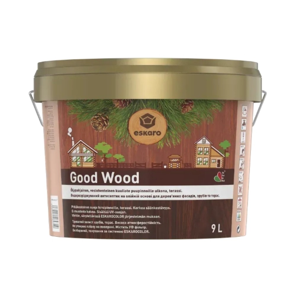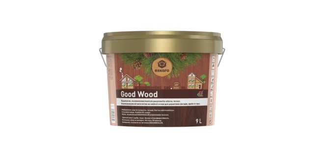 Для дерев'яних поверхонь. Для зовнішніх робіт. Ідеальний засіб для тривалого захисту зрубів, зроблених з колод дерев'яних фасадів, фасадів оброблених «блок-хаусом» та іншою деревиною, дерев'яних елементів з сильно змінюються геометричними розмірами. Можна обробляти дерев'яні віконні палітурки, віконниці, зовнішні двері, дерев'яні паркани, садові меблі, альтанки тощо. Рекомендується використовувати тільки тонований GOOD WOOD, щоб зменшити ймовірність потемніння деревини. Не використовувати засіб для горизонтальних поверхонь (терасна дошка, садові містки та доріжки).