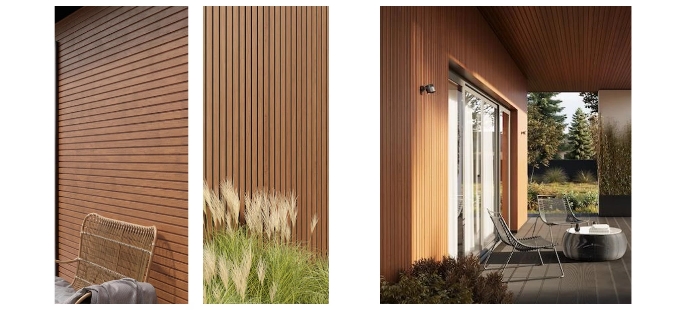 Ще одна перевага — відсутність додаткового догляду: немає потреби фарбувати, лакувати чи просочувати матеріал. Стійкість до подряпин і ударів гарантує збереження фасаду навіть у динамічному міському чи заміському середовищі.