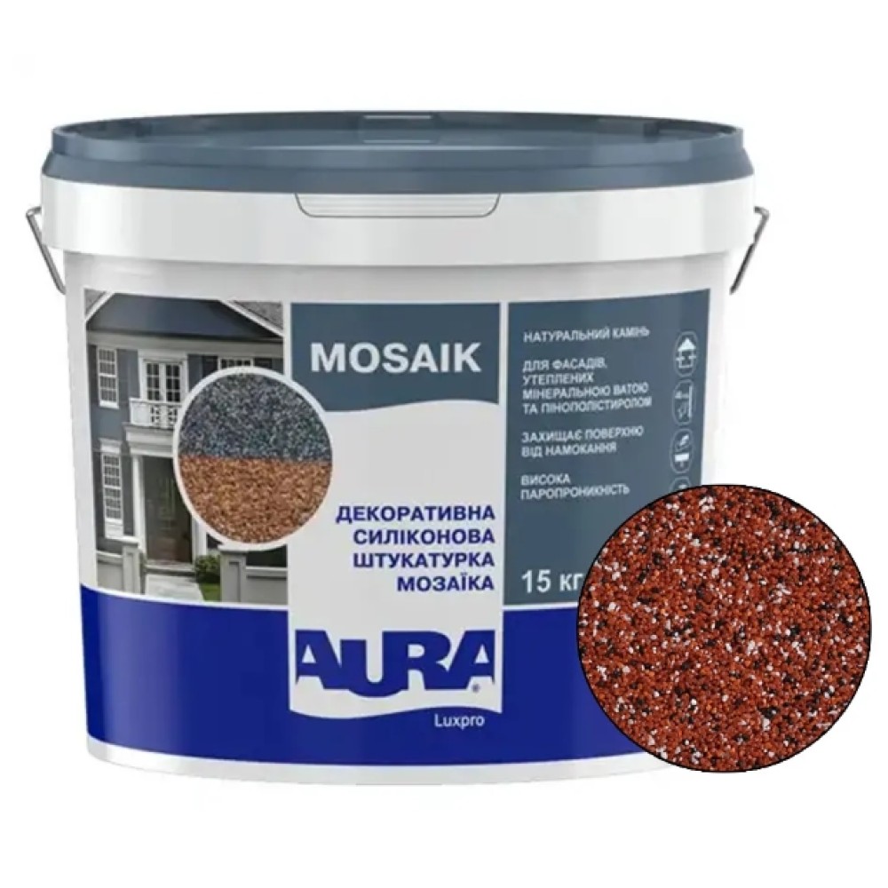 Aura Luxpro Mosaik — це готова до застосування декоративна мозаїчна штукатурка на акриловій основі, модифікована силіконом та з натуральним кам'яним наповнювачем. Вона призначена як для зовнішніх, так і для внутрішніх робіт. Завдяки своїм властивостям, вона особливо підходить для поверхонь, що піддаються високим експлуатаційним навантаженням та впливу атмосферних опадів, таких як цоколі будівель, промислові зони, а також стіни сходових маршів усередині приміщень.