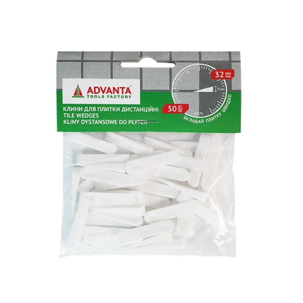 Дистанційні клини для плитки Advanta 32 мм – це надійний інструмент, що полегшує укладання плитки, особливо в місцях з нерівними стиками, при облицюванні сходів, порогів або під час монтажу плінтусів. Вони також чудово підходять для роботи з декоративним каменем та іншими облицювальними матеріалами у важкодоступних місцях.