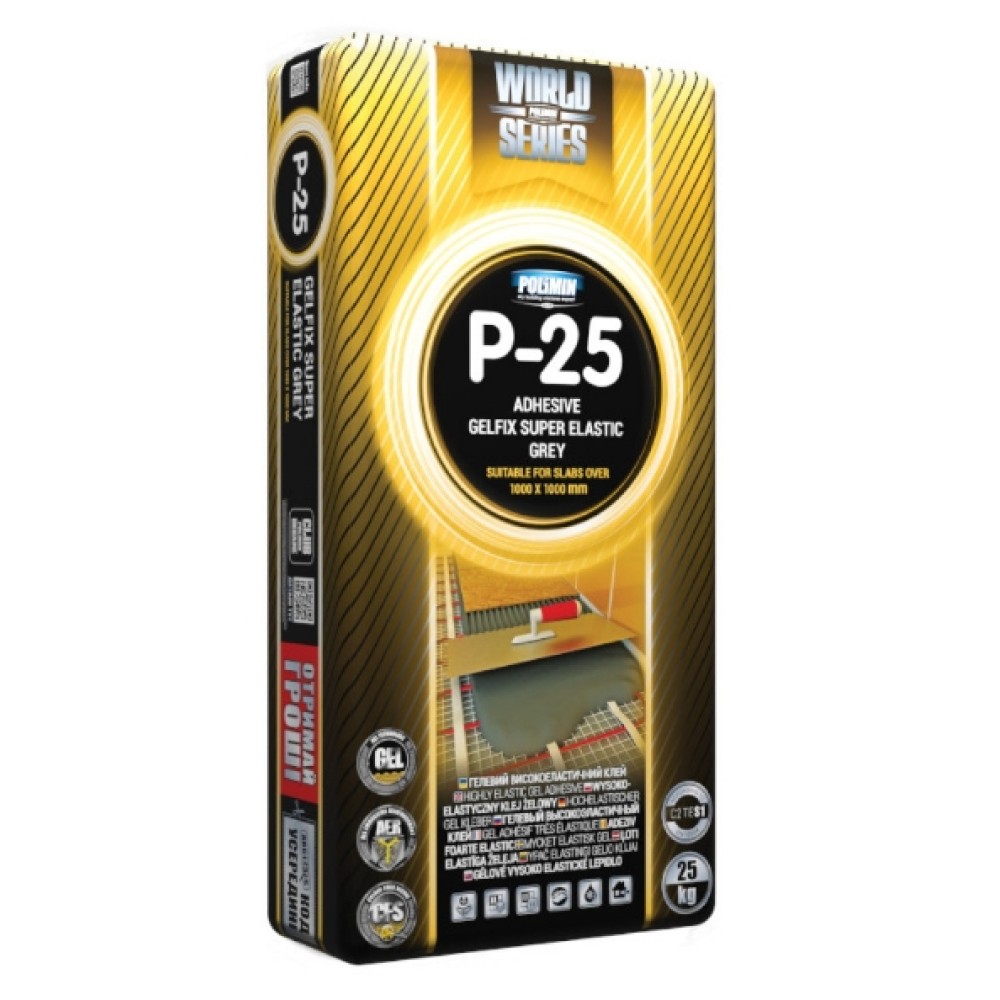 Інтернет-магазин будматеріалів БудБаза Абсолют Харків пропонує купити клей для плитки Полімін П-25 (P-25 GELFIX SUPER ELASTIC) за низькою ціною.