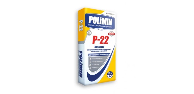 Клей Полімін П-22 виготовляється на основі цементу, мінеральних наповнювачів і спеціальних добавок, рекомендований до застосування при виконанні зовнішніх і внутрішніх робіт.