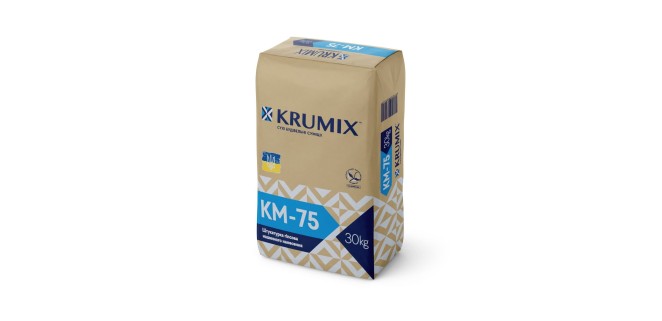 Штукатурка KM-75 KRUMIX (КРУМІКС) призначена для виконання внутрішніх одношарових гіпсових штукатурок на стелях та стінах за допомогою штукатурного агрегату для доведення поверхні до глянцю без додаткової шпаклівки перед нанесенням декоративних покриттів.