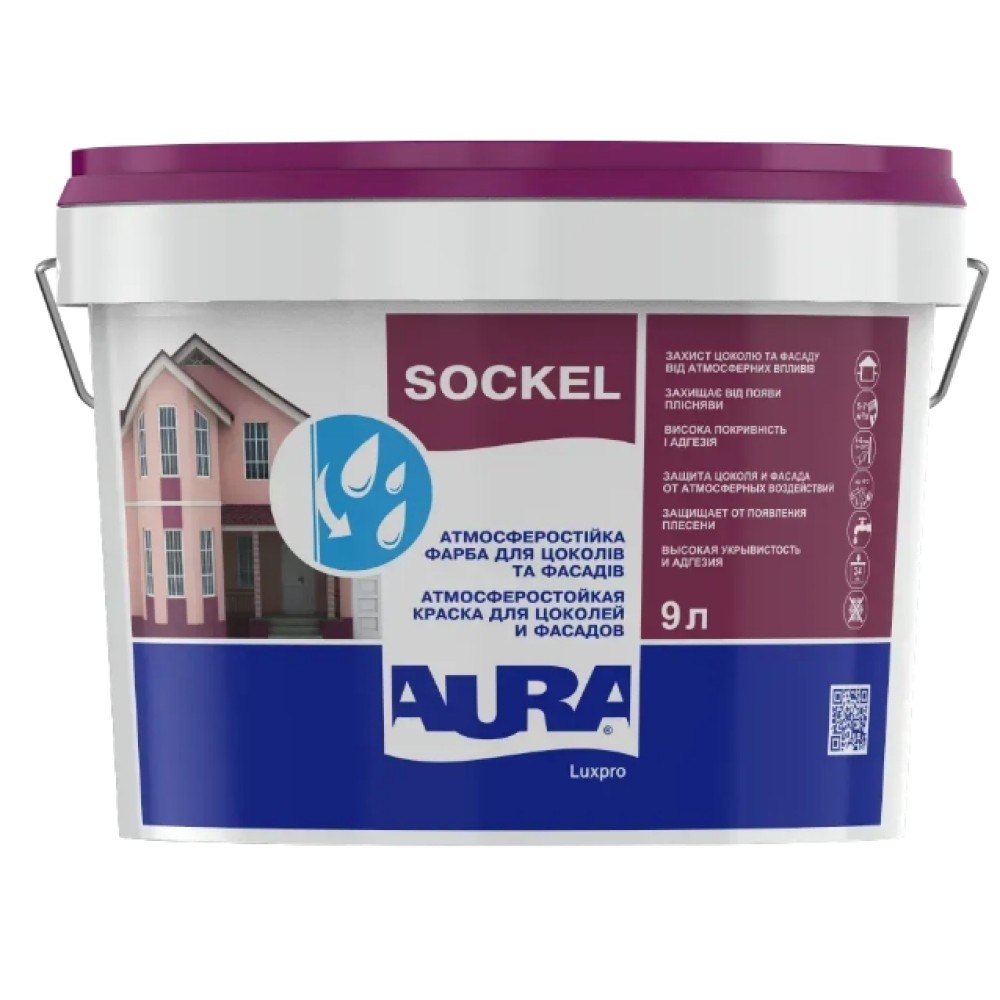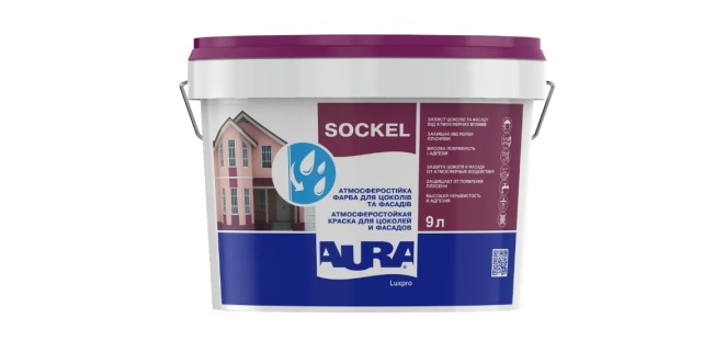 Aura Luxpro Sockel – атмосферостійка акрилова фарба для цоколів та фасадів. Має високу покриваність та адгезію. Створює еластичне, стійке до мокрого стирання паропроникне покриття.