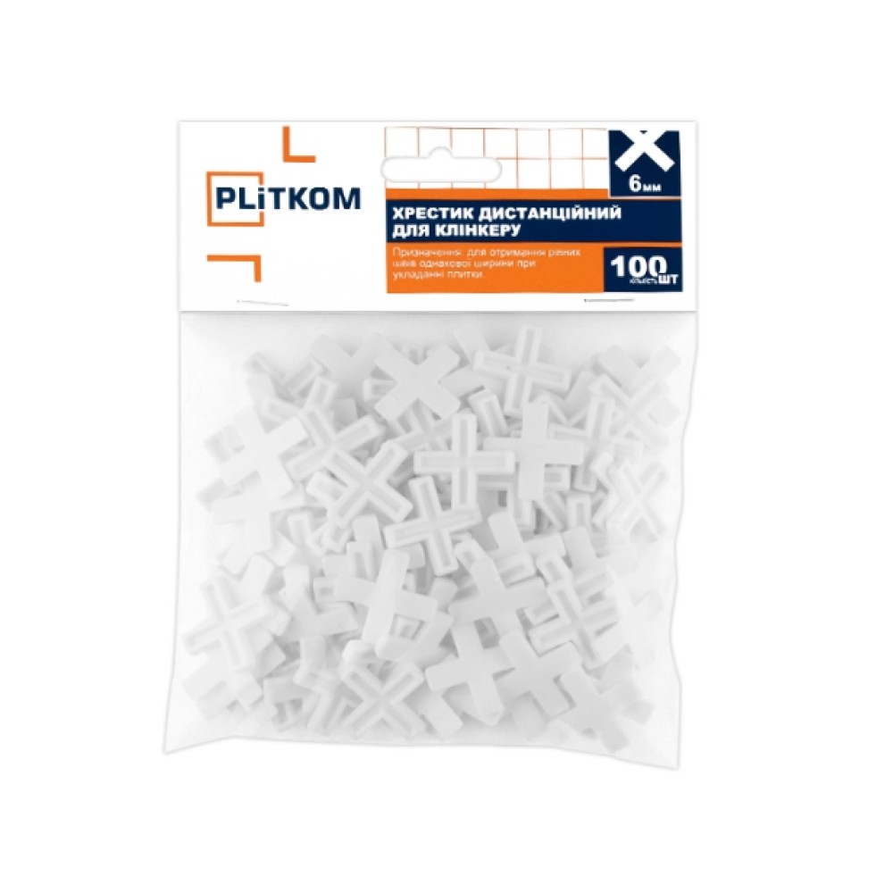 Хрестик дистанційний для клінкеру 6 мм Plitkom, 100 шт