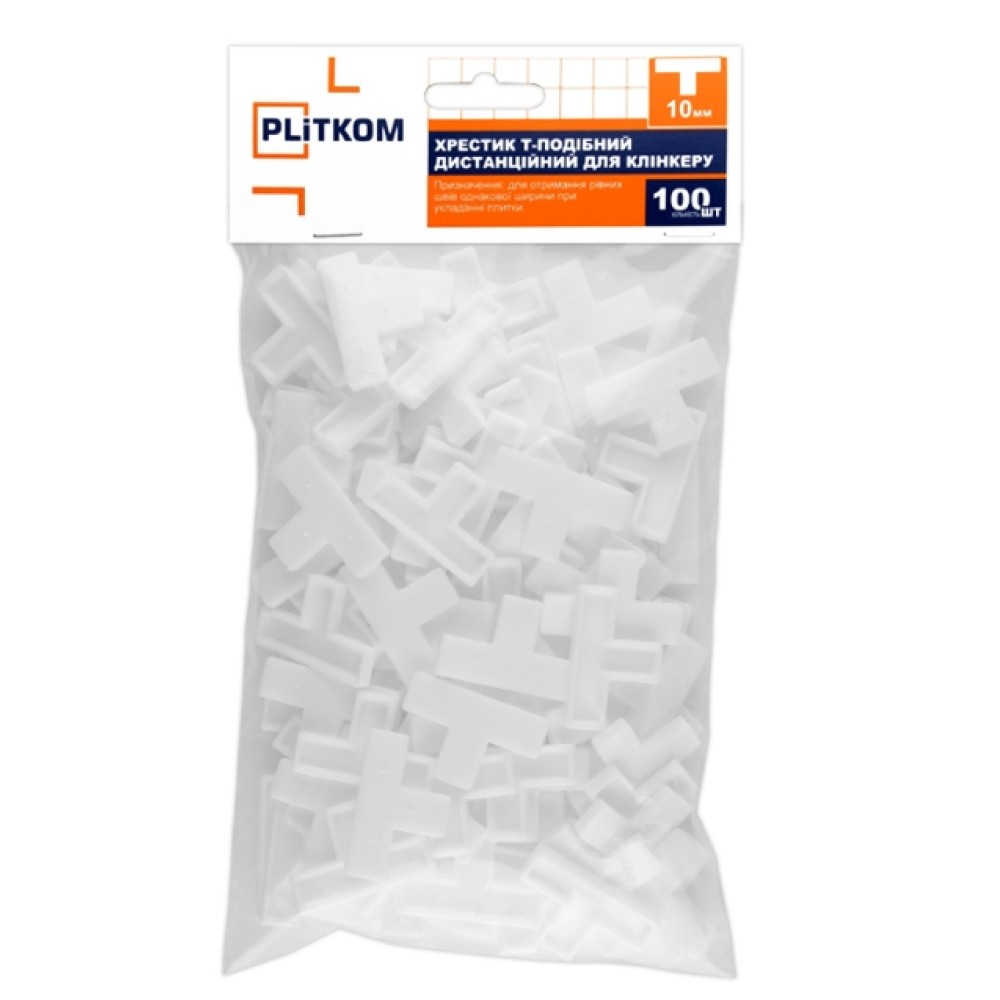 Хрестик Т-подібний дистанційний для клінкеру 10 мм Plitkom, 100 шт