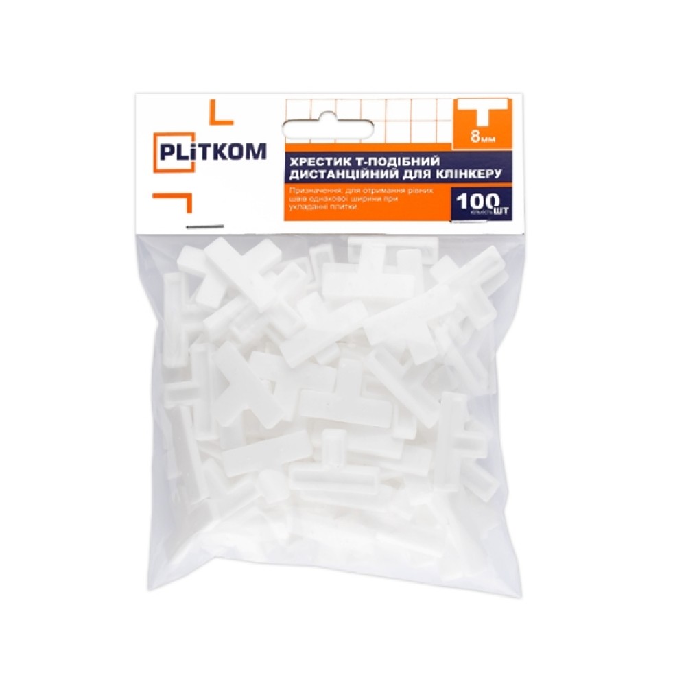 Хрестик Т-подібний дистанційний для клінкеру 8 мм Plitkom, 100 шт