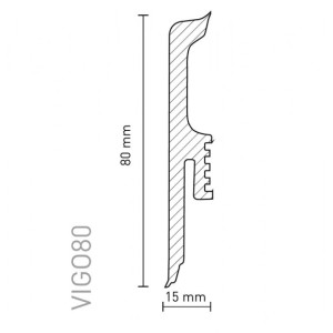 Arbiton Vigo 80 - гібридний плінтус із гумовими ущільнювачами. До плінтуса зверху і знизу кріпиться гумовий елемент, який плавно прилягає до стіни. Плінтус виготовлений з еластичного матеріалу, що дає змогу встановлювати його навіть на криволінійних стінах. Водонепроникний і захищений від УФ-випромінювання. Поверхня матова.