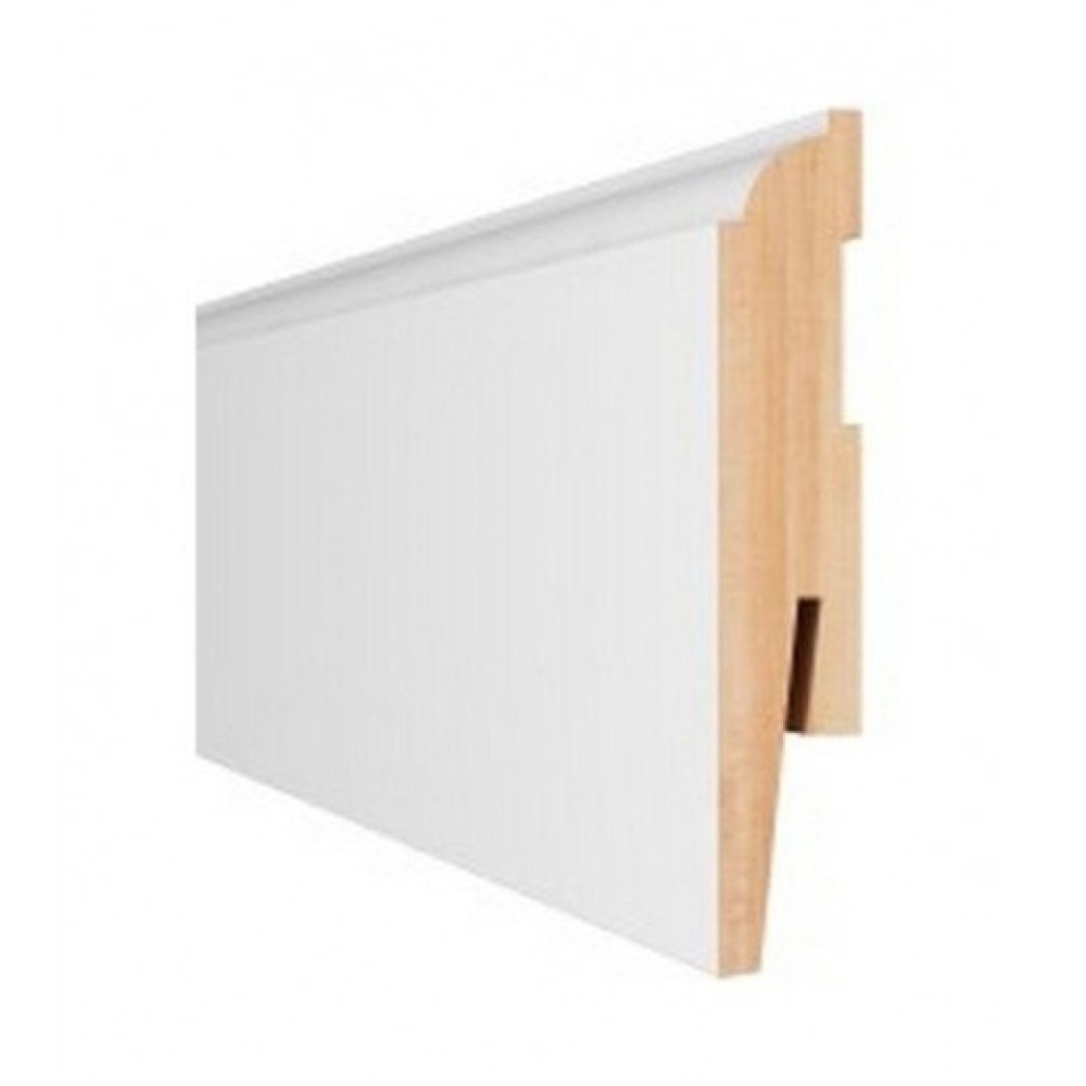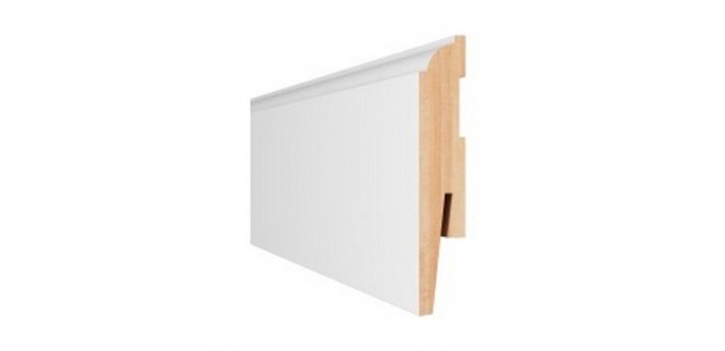 Завдяки збільшеній щільності базового матеріалу (MDF), плінтус має високу довговічність, знижену ламкість, підвищену ударостійкість і низьке водопоглинання. Цей плінтус має цілу низку переваг. Можна вибрати будь-який колір фарби і здійснити оздоблення відповідно до своїх ідей. Покривати плінтус слід акриловими, латексними або силіконовими фарбами на водній основі. Простий у монтажі та установці, кріпиться на кляймери за умови рівних стін, або на рідкі цвяхи.