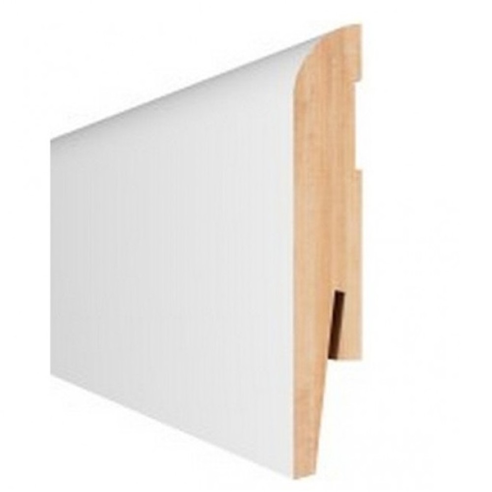 Завдяки збільшеній щільності базового матеріалу (MDF), плінтус має високу довговічність, знижену ламкість, підвищену ударостійкість і низьке водопоглинання. Цей плінтус має цілу низку переваг. Можна вибрати будь-який колір фарби і здійснити оздоблення відповідно до своїх ідей. Покривати плінтус слід акриловими, латексними або силіконовими фарбами на водній основі. Простий у монтажі та установці, кріпиться на кляймери за умови рівних стін, або на рідкі цвяхи.