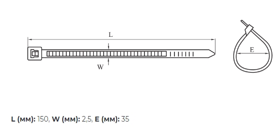 Стяжка кабельна 2,5х150 білий (100 шт) являє собою пластикову смугу із замком з одного боку та рифленою поверхнею з іншого. Застосовується для стягування електричних та слаботочних проводів (телефонних, комп'ютерних або телевізійних, антенних кабелів) у джгути. Для кріплення дротів до каркаса під час створення електросистеми та прокладання електропроводки. Просте у використанні виріб дуже суттєво полегшує та прискорює роботу з розведення електрики. Забезпечує виконання прокладки проводів акуратно із забезпеченням безпеки подальшої експлуатації. З їхньою допомогою можна розгрупувати дроти за призначенням, якщо вони прокладаються в одній магістралі. Це зробить сам монтаж електросистеми простішим і спростить роботу у разі ремонту цієї системи надалі.