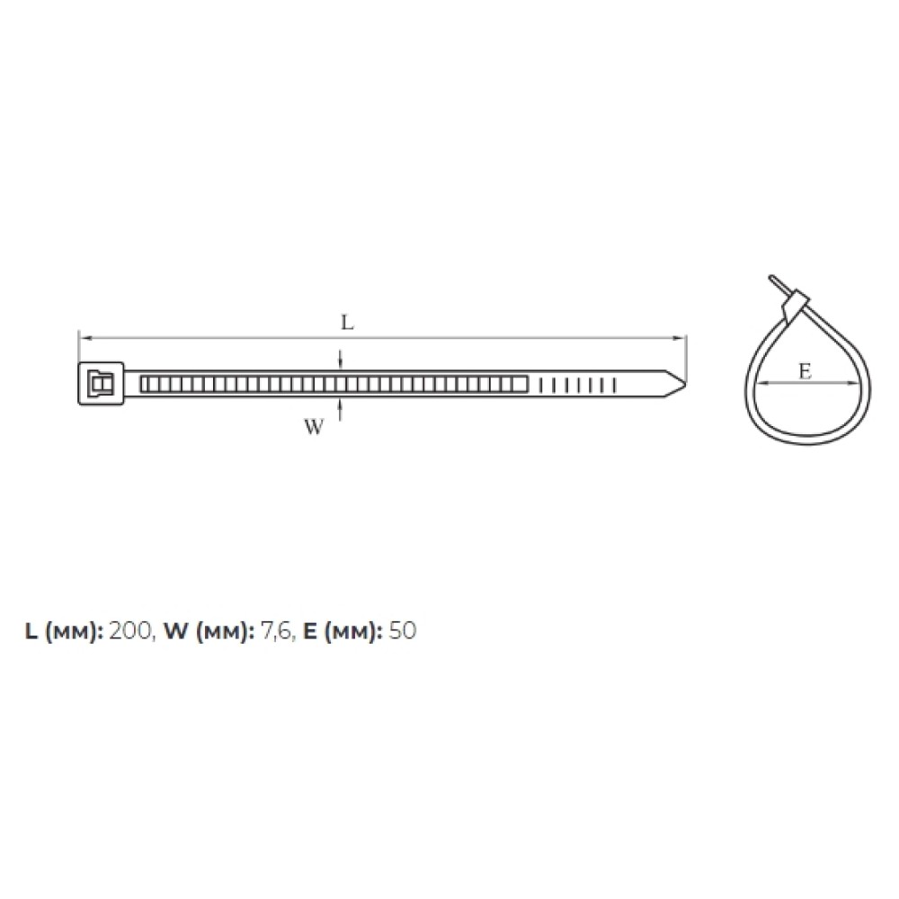 Стяжка кабельна нейлонова чорна 7,6х200 мм, 100 шт