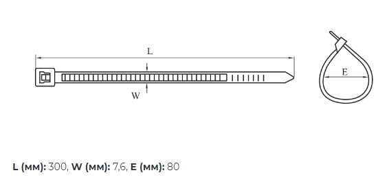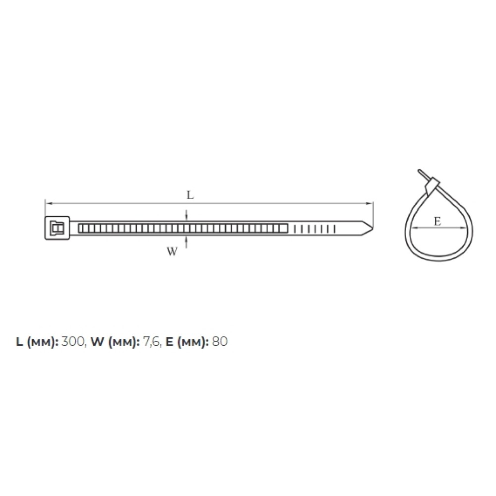 Стяжка кабельна нейлонова біла 7,6х300 мм, 100 шт
