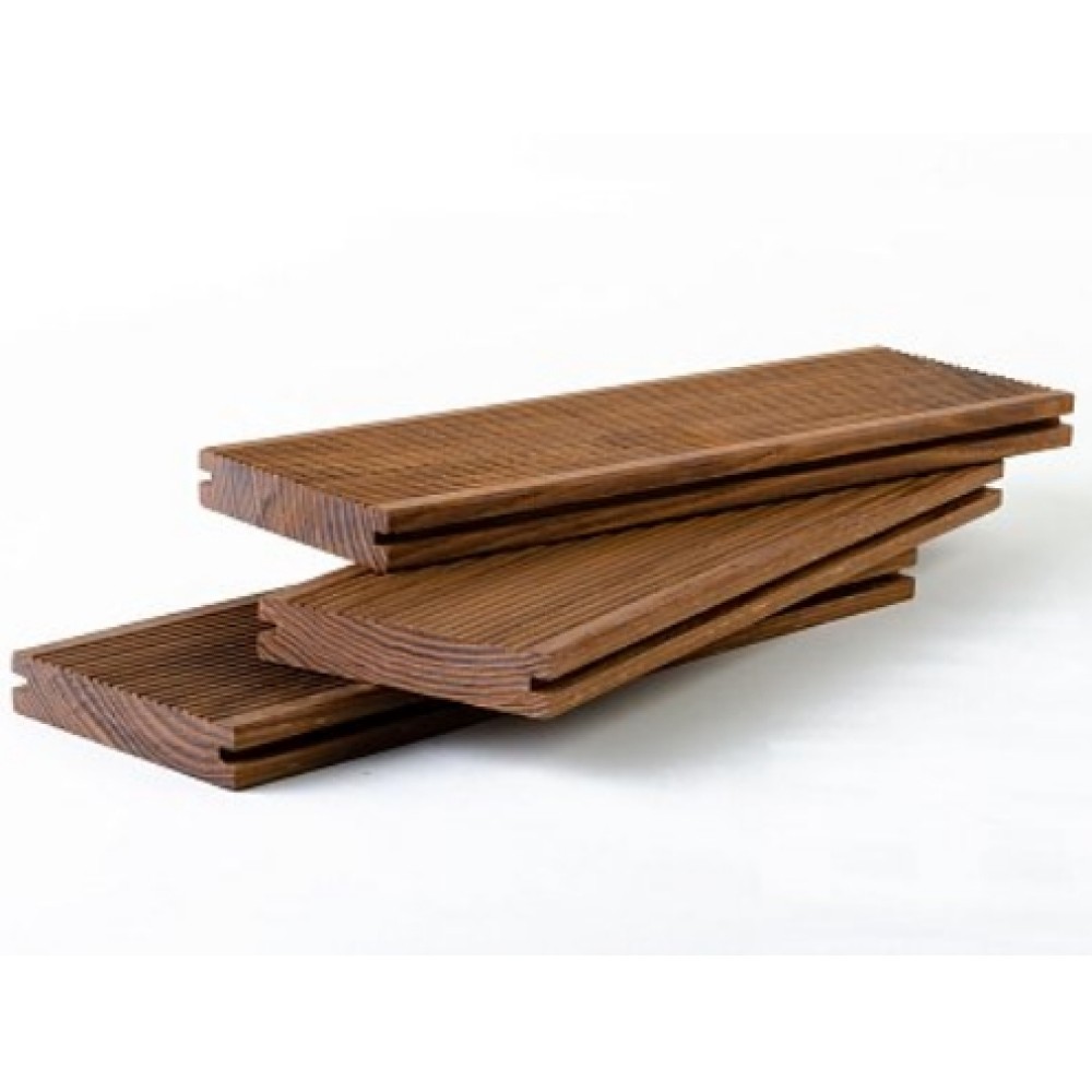 Терасна дошка виготовлена з ясеня, проходячи спеціальну обробку під впливом високих температур, набуває міцності та довговічності, стійкості до впливу несприятливих умов та впливу мікроорганізмів. Така технологія термообробки надає довговічність матеріалу і природну красу. Має стійкість до гниття та комах.