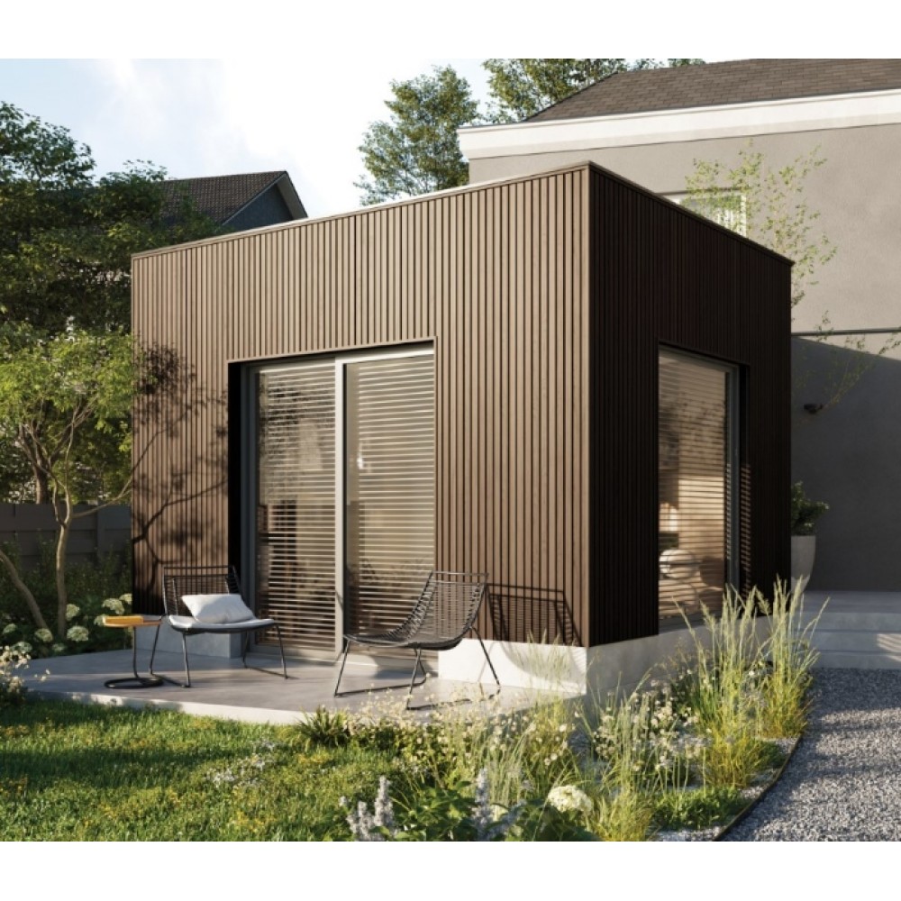 Панелі VOX Fronto MAX точно імітують деревину, створюючи естетику натурального матеріалу, але без його недоліків. Завдяки плоскій формі їх можна монтувати вертикально чи горизонтально, на фасадах і стелі. Поверхня стійка до подряпин, легко очищується та не вимагає фарбування.