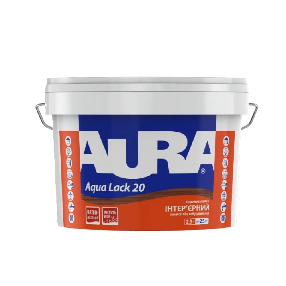 Лак інтер'єрний акриловий Aura Aqua Lack 20, 2,5 л, безбарвний, напівматовий