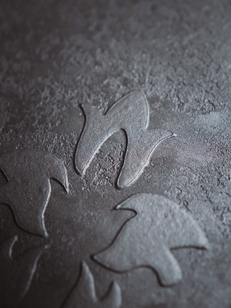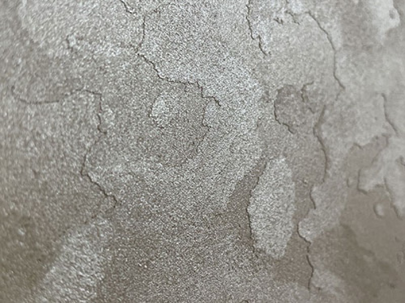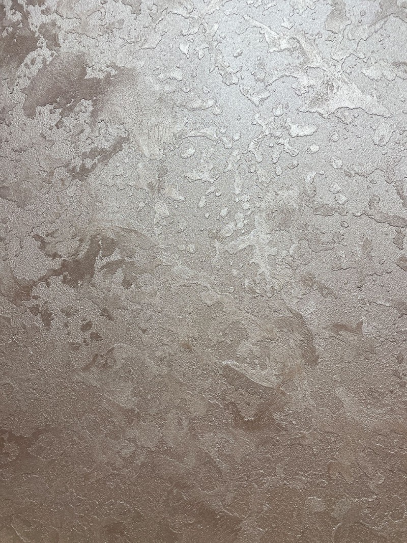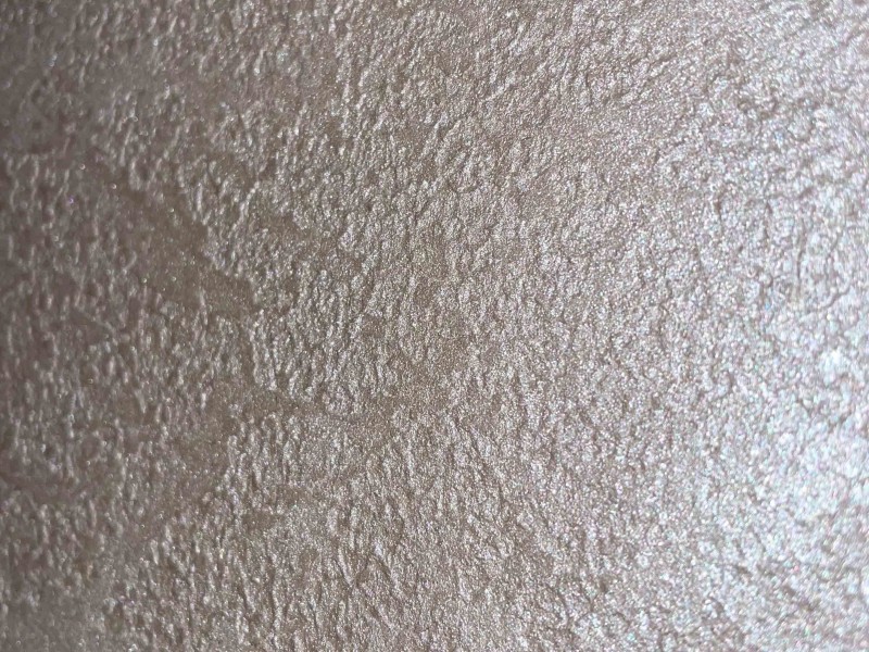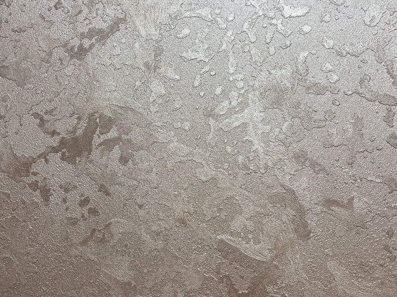 Одним із популярних матеріалів є штукатурка з додаванням перламутрових мікрочастинок та мармурового пилу, наприклад, Arabesk. Таке покриття створює ефект легкого мерехтіння та переливів, які змінюються залежно від кута падіння світла. Воно не лише естетично привабливе, але й довговічне, паропроникне та стійке до механічних пошкоджень.
