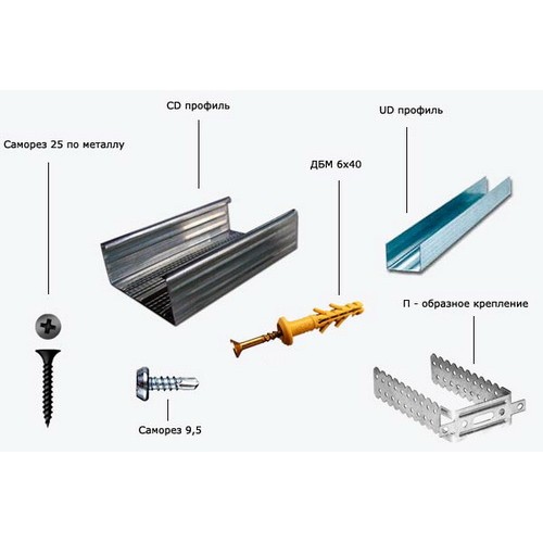 Профіль для гіпсокартону різниться по конфігурації, може бути виконаний з металу різної товщини. Стандартна довжина планки будь-якого виду подібних виробів становить 3 або 4 метри. Товщина металу зазвичай варіюється від 0,38 мм до 0,65 мм. Жорсткість і надійність конструкції, відповідно, залежить від товщини металу, тому найбільш важкі і великі гіпсокартонні системи рекомендується виконувати з використанням профілю товщиною не менше 0,5 мм. Для звичайних оздоблювальних робіт найбільш часто використовується планки з товщиною металу 0,4 мм. По конфігурації профіль для гіпсокартону підрозділяється на CD, UD, CW і UW.