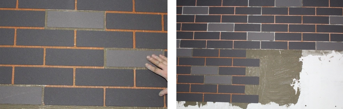 Приклеювання модулів клінкеру здійснюється із застосуванням сухих клейових сумішей для приклеювання керамогранита.