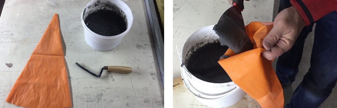 Для заповнення швів рекомендується використати: мішок для нанесення затирочной суміші, шприц-пістолет для тієї, що затерла швів і так далі.