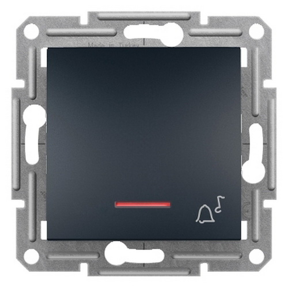 Вимикач 1-клавішний з підсвіткою кнопковий «Дзвінок» Asfora, антрацит, IP20, арт. EPH1700171