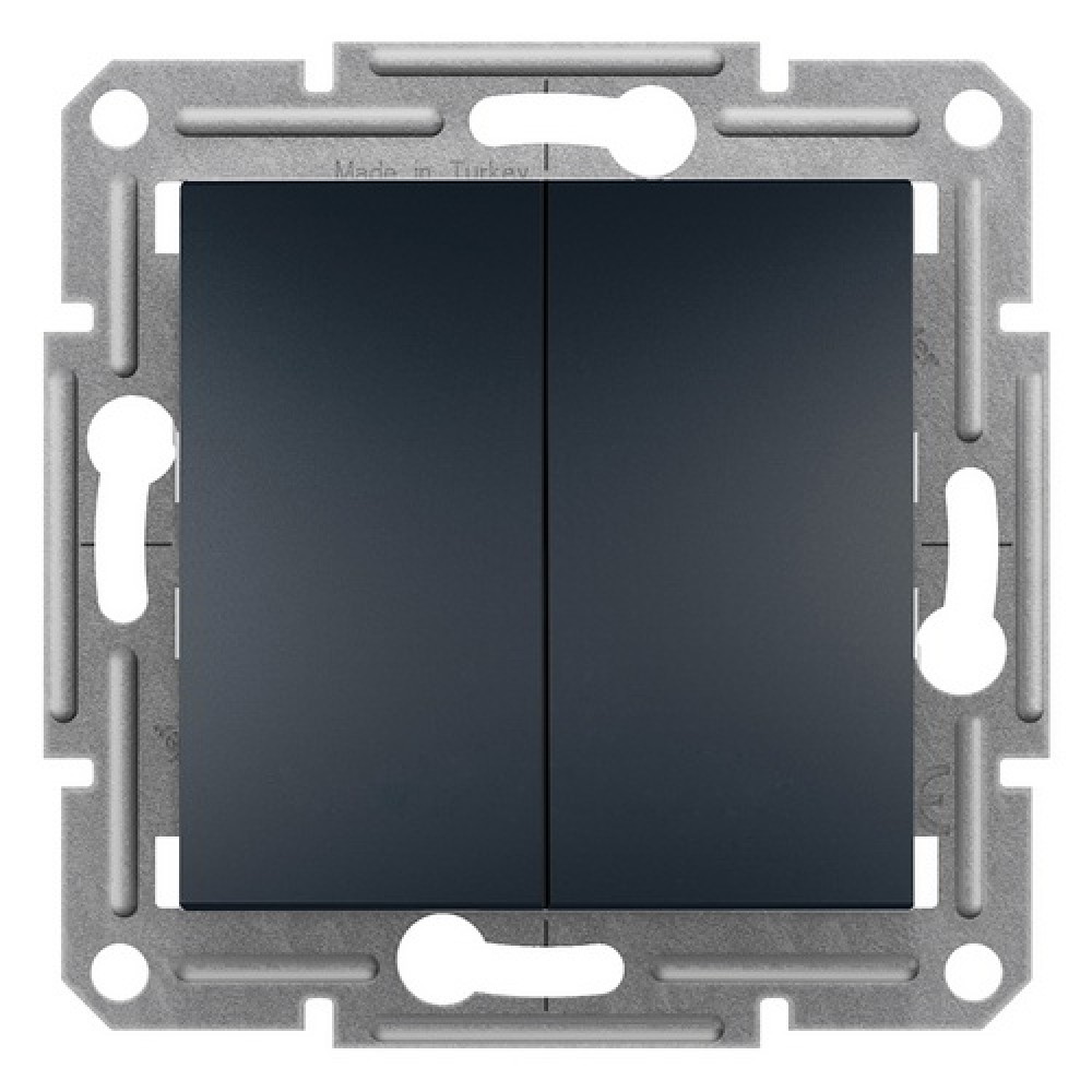 Вимикач 2-клавішний кнопковий Asfora, антрацит, IP20, арт. EPH1100171
