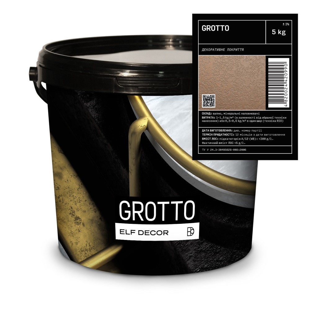 Декоративне покриття Grotto (Гротто) виробництва ТМ Elf Decor створене на основі натурального вапна, сьогодні широко використовується для декорування інтер'єрів. Чудово себе веде у вологих приміщеннях, а вміле поєднання покриття з декоративним лаком Azure створить справді неповторну красу оздоблення.