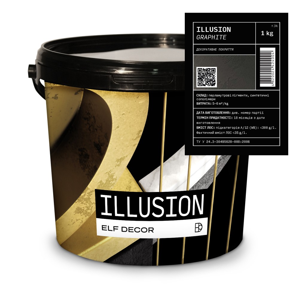 Illusion Fantasy Ілюзіон Фантазія декоративна фарба Elf Decor GRAPHITE 1 кг, 6 кг/м2