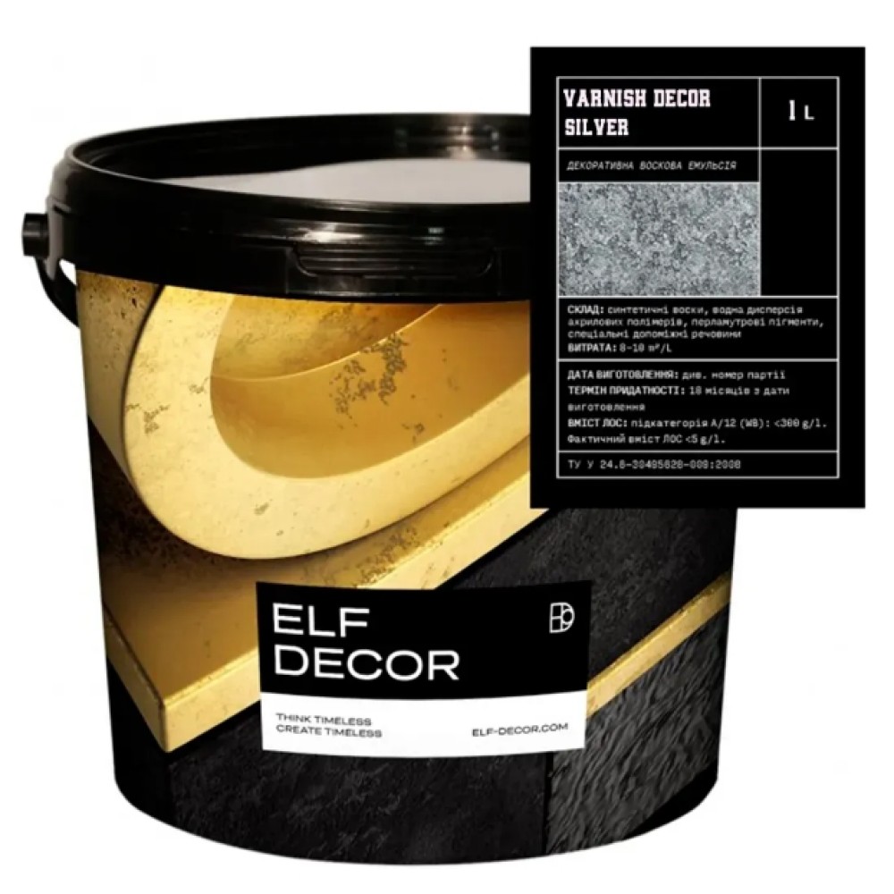 Лак декоративний Elf Decor Varnish Decor Silver 1 л, 10-12 м2/л