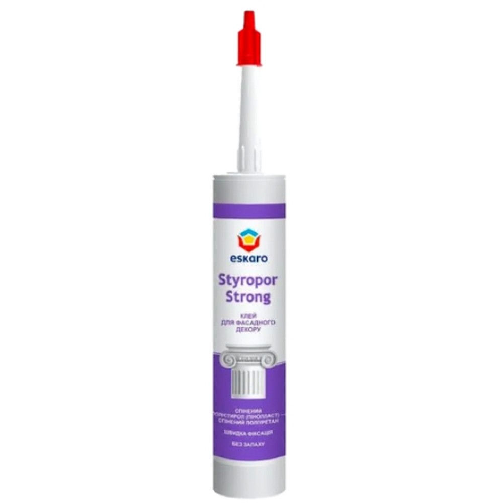 Клей для фасадного декору Eskaro Styropor Strong 300 мл - це універсальний готовий до застосування клейовий розчин, розроблений для ефективного приклеювання виробів зі стиропора та інших матеріалів на різних поверхнях як усередині, так і зовні.