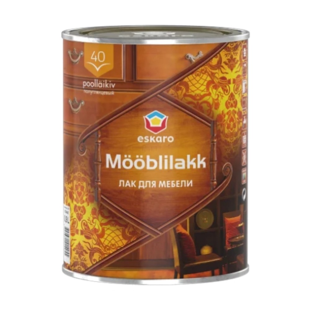 Лак водорозчинний акриловий Eskaro Mooblilakk 40, 0,9 л, безбарвний
