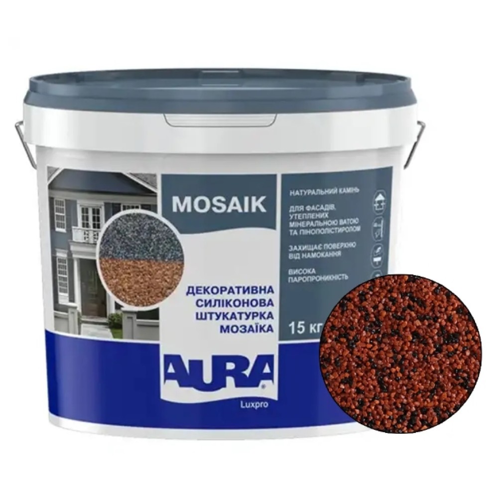 Aura Luxpro Mosaik — це готова до застосування декоративна мозаїчна штукатурка на акриловій основі, модифікована силіконом та з натуральним кам'яним наповнювачем. Вона призначена як для зовнішніх, так і для внутрішніх робіт. Завдяки своїм властивостям, вона особливо підходить для поверхонь, що піддаються високим експлуатаційним навантаженням та впливу атмосферних опадів, таких як цоколі будівель, промислові зони, а також стіни сходових маршів усередині приміщень.