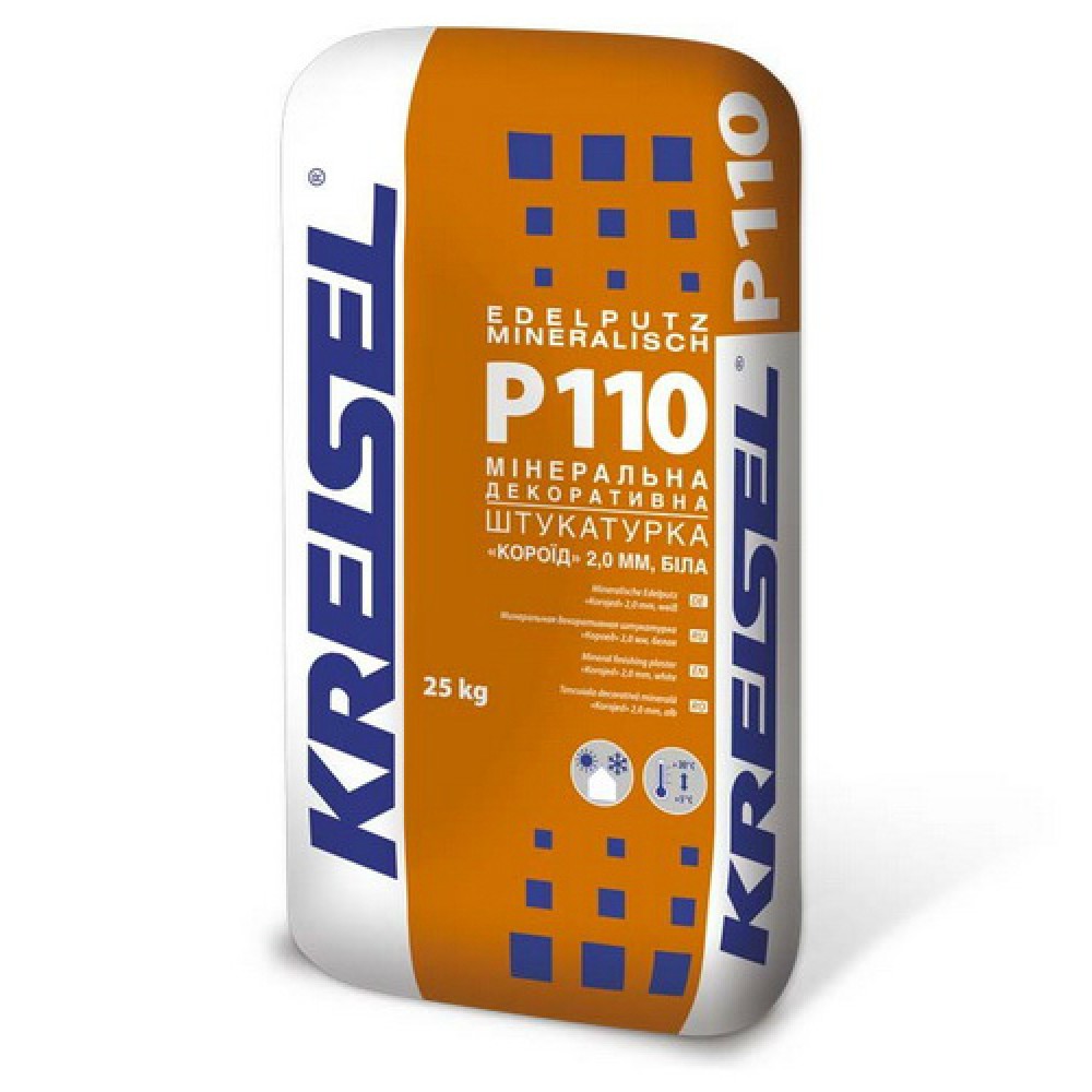 Мінеральна декоративна штукатурка (2 мм короїд) Kreisel P 110 - це високоякісна мінеральна штукатурка «короїд» у вигляді сухої суміші заводського виготовлення мінеральних в'яжучих, мінеральних заповнювачів і добавок, що модифікують. Після змішування з водою утворює однорідну штукатурну масу виконання фактурних штукатурок. Після затвердіння відрізняється водо- та морозостійкістю, високою паропроникністю, гарною адгезією з основою та стійкістю до атмосферних впливів.