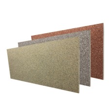 Компанія Гранд-Фасад спеціалізується на виробництві облицювальних матеріалів і утеплювачів нового покоління для обробки фасадів і внутрішнього оздоблення приміщень. Вся продукція має яскраво виражену еластичність, поверхневу міцність і має зовнішній вигляд натуральних порід каменю, мармуру, пісковика, деревної дошки, цегляної кладки. При виробництві використовуються тільки натуральні природні матеріали: мармур, кварц, залізно окисні пігменти, акрилові сполучні. Матеріал має невелику вагу при товщині захисного декоративного шару від 3 мм, що дозволяє при облицюванні або утепленні фасадів будівель зменшити навантаження на фундамент. Унікальність складу покриття забезпечує паропроникність і високу атмосферостійкість, строк служби - понад 50 років. Широкий спектр і різноманітність форм і фактур доповнює велика кольорова гама - більше 300 варіантів колірних рішень.