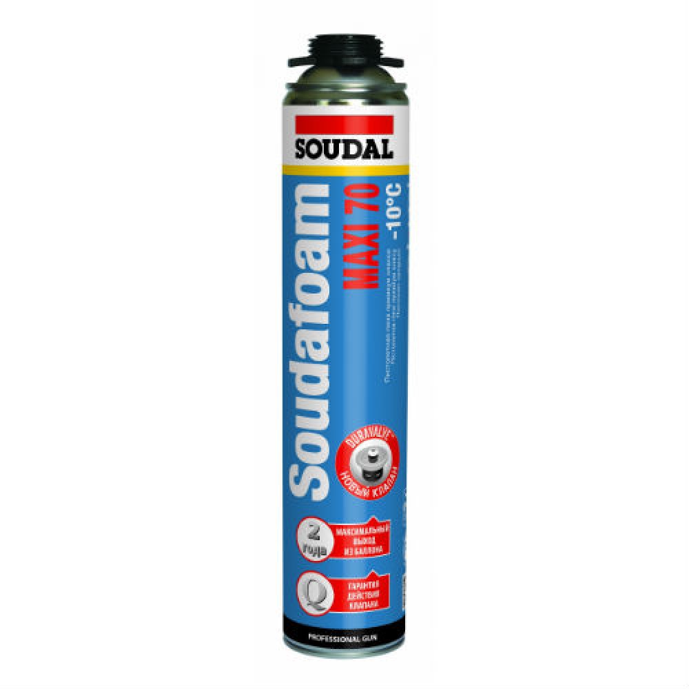 Профессиональная монтажная пена Soudafoam Maxi 70 зимняя – это универсальная полиуретановая пена с газом-вытеснителем (не содержит CFC, безопасен для озонового слоя), однокомпонентная, саморасширяющаяся, готовая к применению, с увеличенным выходом. Специально разработана для применения при низких температурах до –10° C. Подходит для отделочных и монтажных работ по любым поверхностям кроме тефлона, полиэтилена и полипропилена. Благодаря низкому расширению безопасна для тонких профилей из ПВХ.