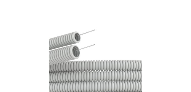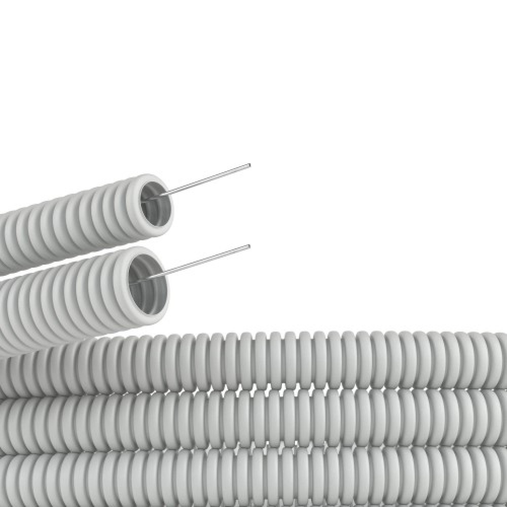 Гнучка гофрована труба ДКС Лайт (DKC Light), твердостінна, з протяжкою, діаметр - 20 мм, колір - сірий, бухта - 100 пог.м