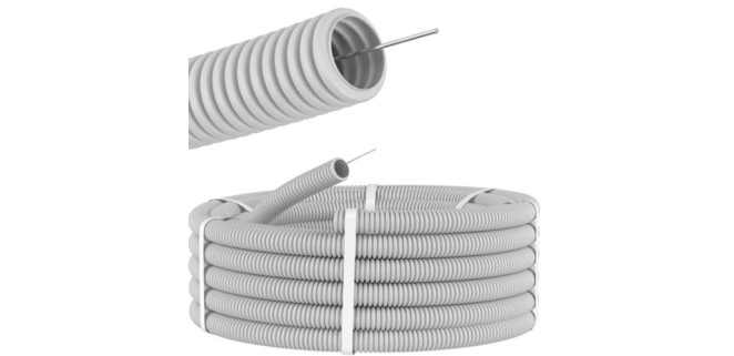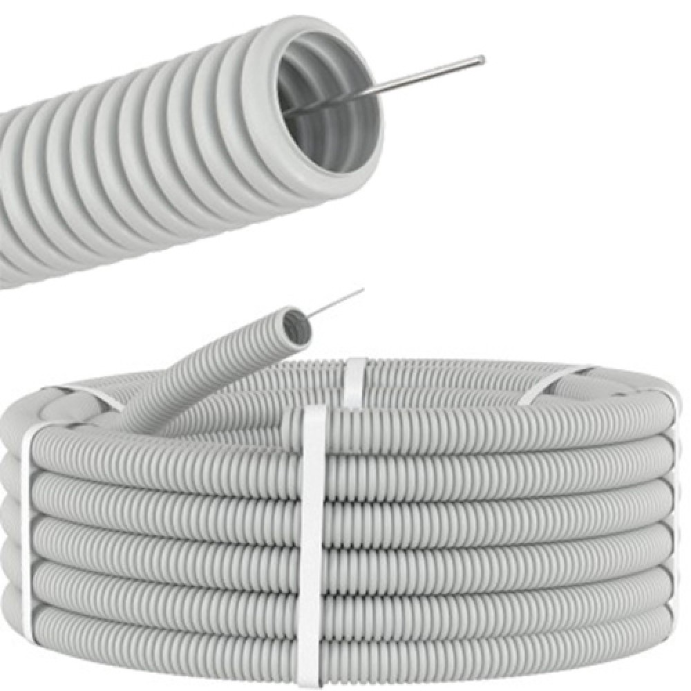 Гнучка гофрована труба ДКС Стандарт (DKC), твердостінна, з протяжкою, діаметр - 20 мм, колір - сірий, бухта - 100 пог.м