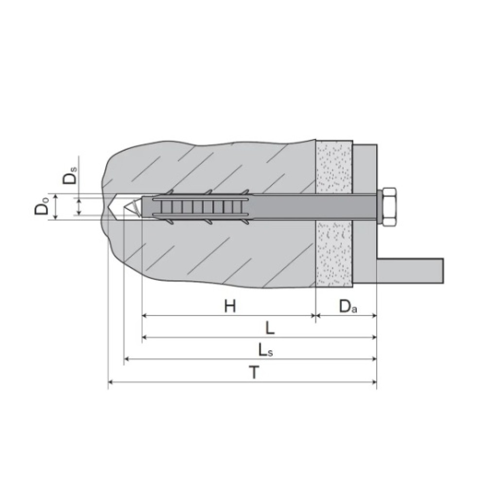 - Конструкція дюбеля дозволяє використання його в різних будівельних матеріалах таких як бетон, порожнисті бетонні плити, повнотілі та порожнисті керамічні та силікатні цеглини, повнотілі та порожнисті.