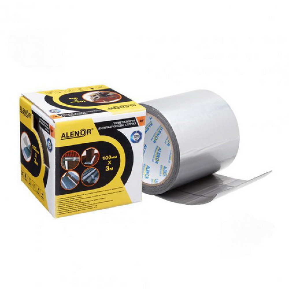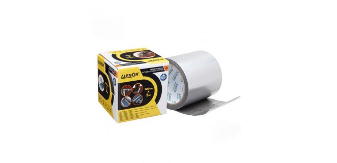ALENOR BF - стрічка для ремонту покрівлі, герметизуюча, фольгована, на основі бутилкаучуку постійної липкості із захисною антиадгезійною плівкою, колір алюміній, розмір 100 мм х 3 м