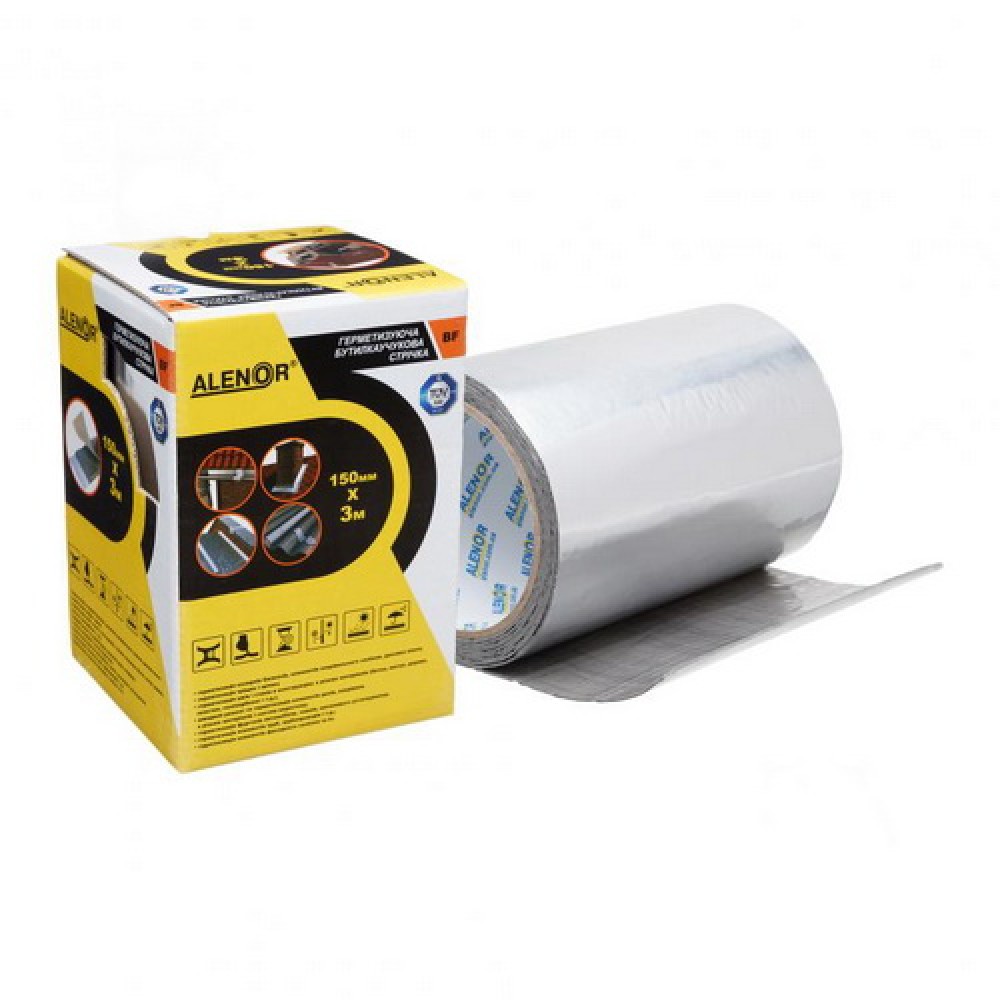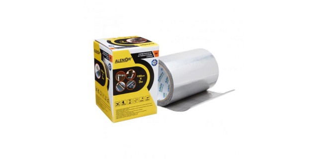 ALENOR BF - стрічка для ремонту покрівлі, герметизуюча, фольгована, на основі бутилкаучуку постійної липкості із захисною антиадгезійною плівкою, колір алюміній, розмір 150 мм х 3 м