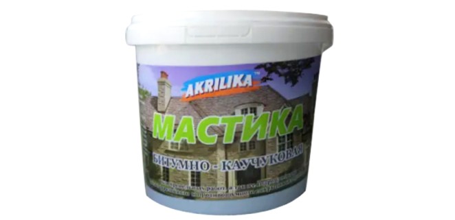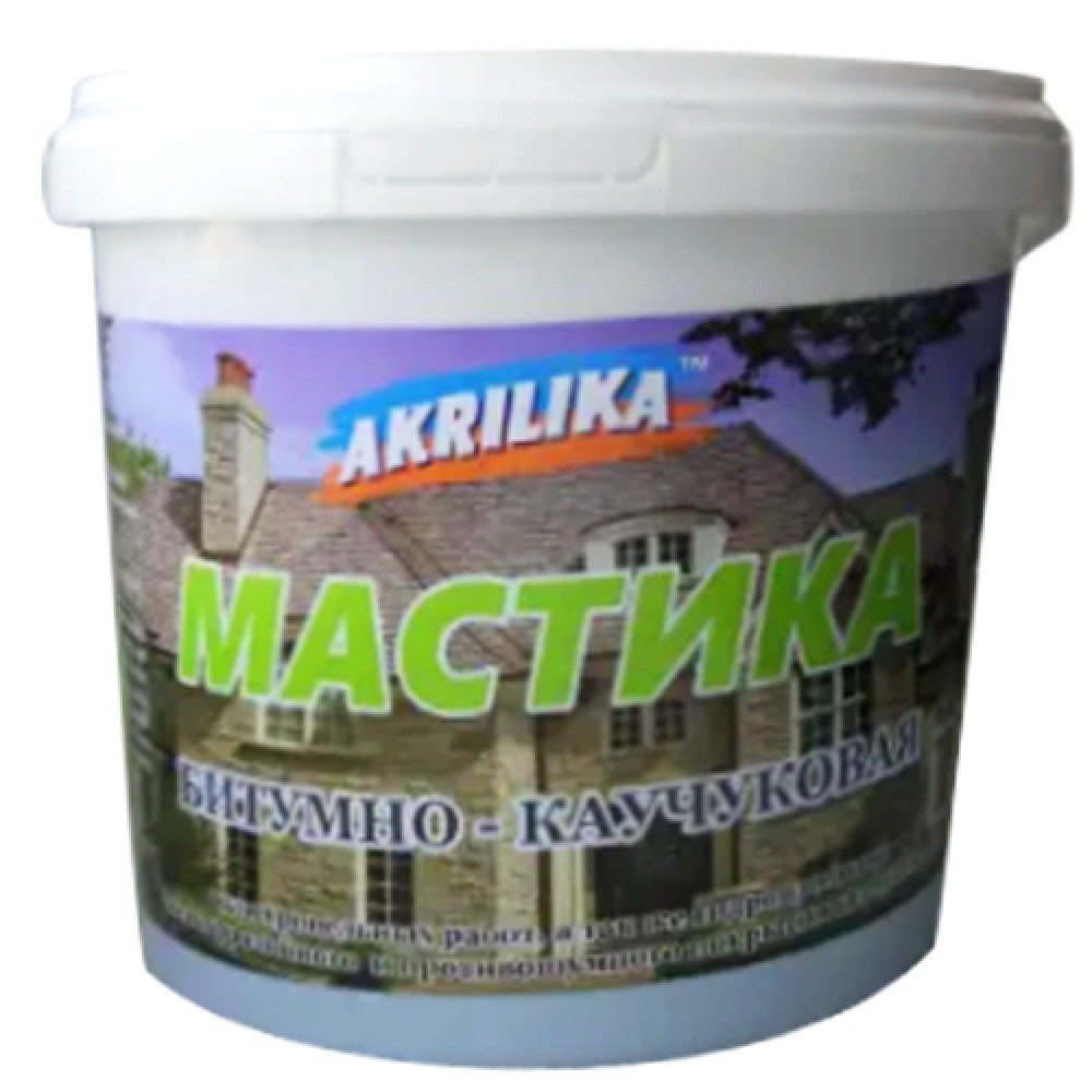 Мастика бітумно-каучукова Akrilika (Акриліка) - призначена для влаштування мастичної гідроізоляції та ремонту всіх видів покрівель. Після висихання утворює високоміцне покриття із широким діапазоном температур експлуатації. Покрівельна мастика Мастика бітумно-каучукова Акриліка  являє собою готовий до застосування багатокомпонентний матеріал, що складається з нафтового бітуму, каучуку, технологічних добавок, мінеральних наповнювачів та органічного розчинника.