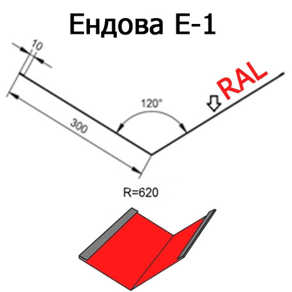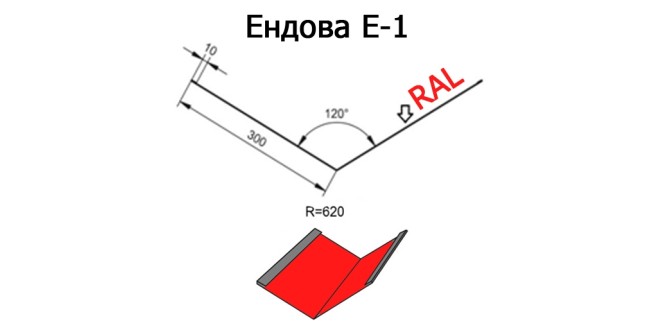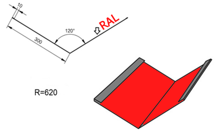 Ендова для кровли – Ендова Е-1 R=620, длина 2м, покрытие - полиэстер,толщина металла 0,45мм