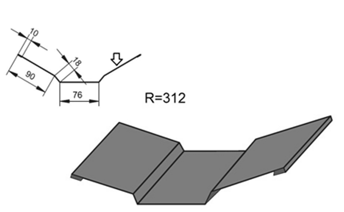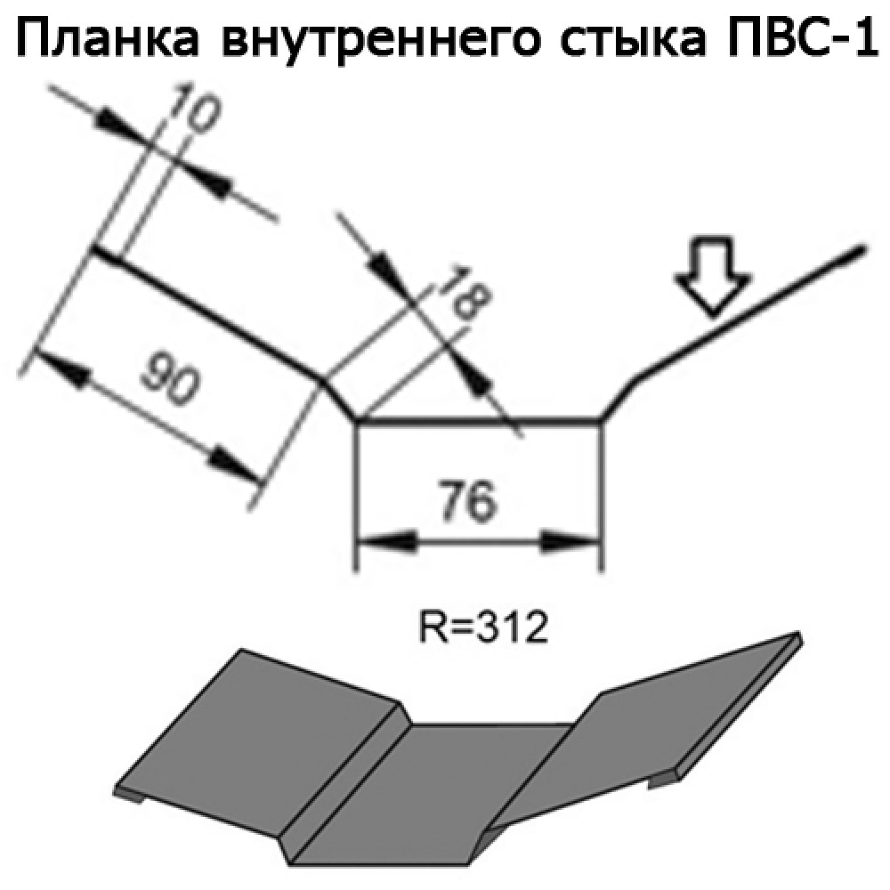 Планка внутреннего стыка ПВС-1 R=312,  длина 2м, металл – цинк, 0,45мм