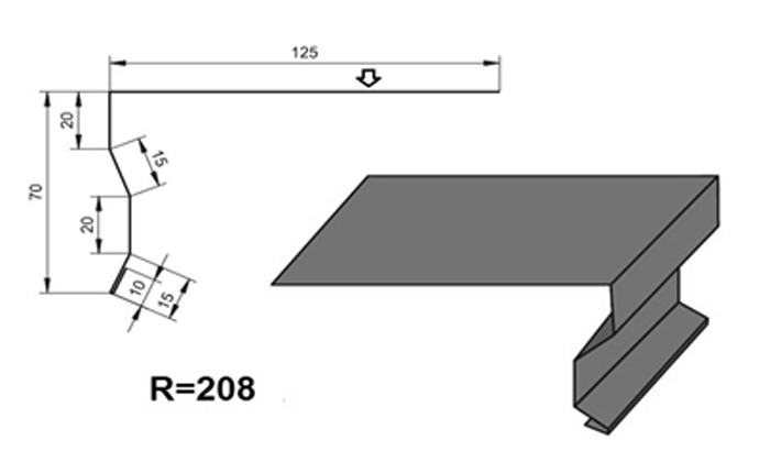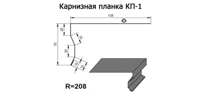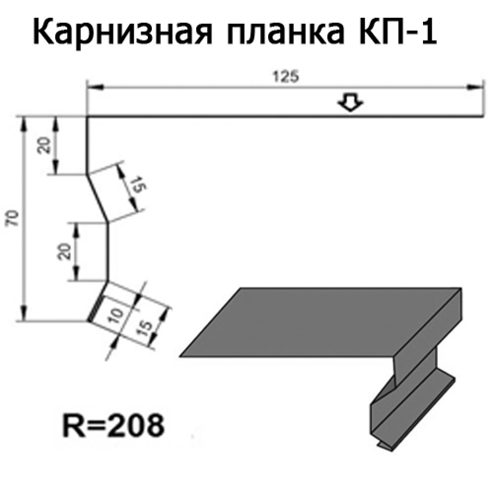 Карнизная планка КП-1 R=208,  длина 2м, металл – цинк, 0,45мм