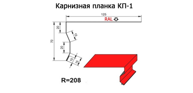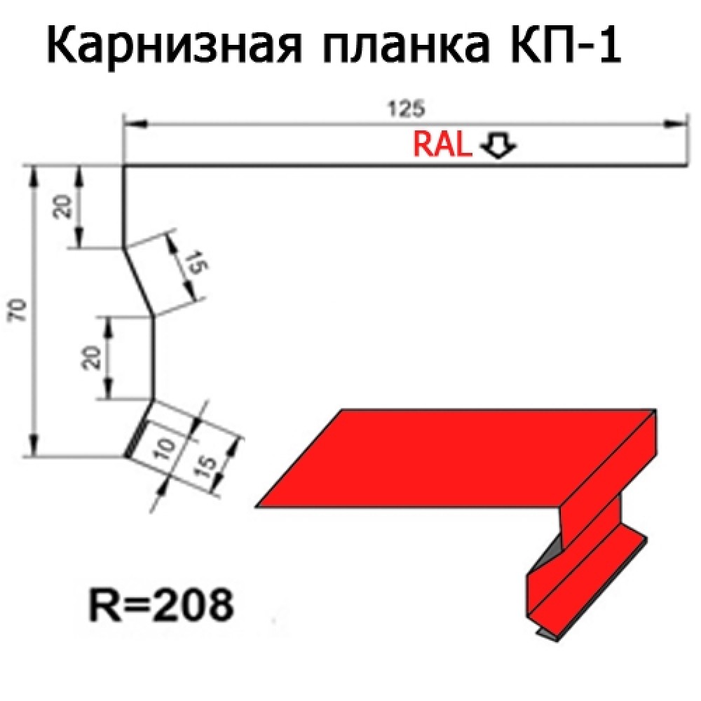Карнизная планка КП-1 R=208,  длина 2м, покрытие - матполиэстер, толщина металла 0,47мм