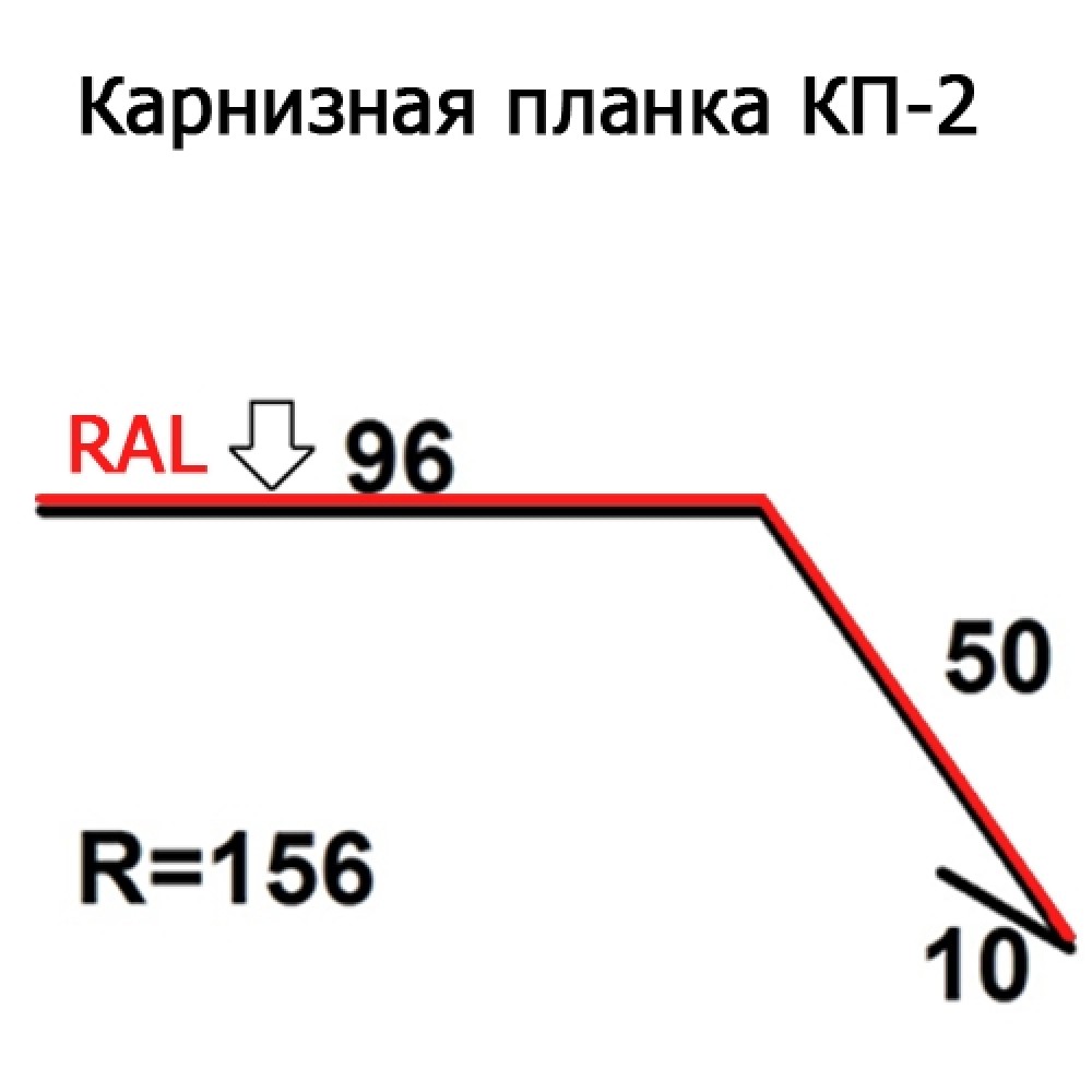 Карнизная планка КП-2 R=156,  длина 2м, покрытие - полиэстер, толщина металла 0,45мм