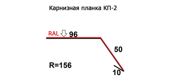 Карнизная планка КП-2 R=156, длина 2м, покрытие - матполиэстер, толщина металла 0,47мм