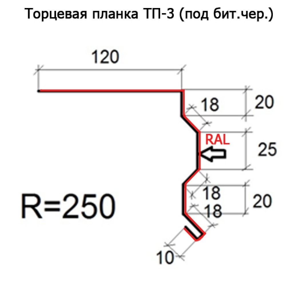 Торцевая планка ТП-3 R 250 (под бит.чер.) длина 2м МАТПОЛИЭСТЕР