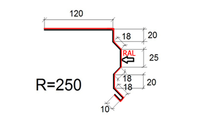 Торцевая планка ТП-3 (под бит.чер.) R=250,  длина 2м, покрытие - матполиэстер, толщина металла 0,47мм